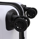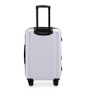 Rodas duplas  360º em plástico proporcionam estabilidade adicional, assegurando que a mala permaneça equilibrada durante o transporte.