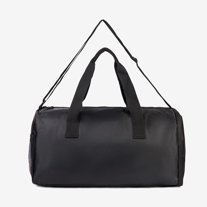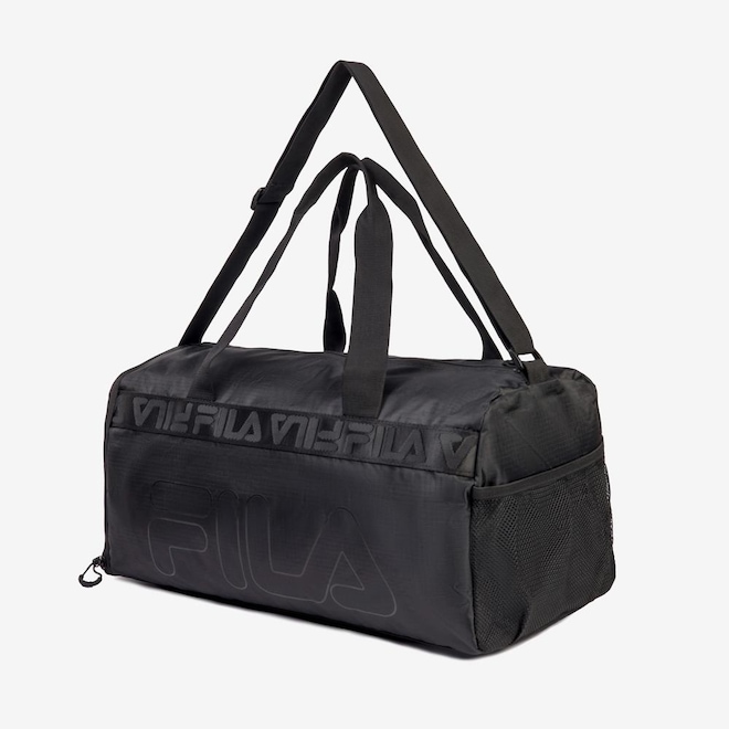 Mala confeccionada em ripstop de poliéster com forro personalizado. Apresenta compartimento principal com bolso interno e fechamento em zíper invertido com puxador duplo. Possui porta-calçados na lateral com zíper, bolso lateral em mesh e FILA Outline estampado no painel frontal. Contém detalhes em fita FILA em Jacquard, alças de mão e alça de ombro com fivela de ajuste. Dimensões: 70 cm X 33 cm X 32,5 cm. Capacidade: 75 L.