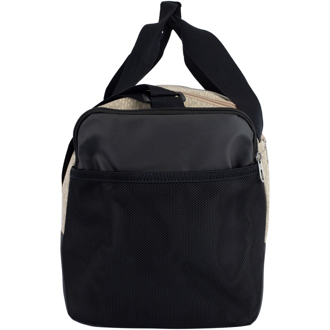 A mala Nike tem capacidade de 41 litros, suas alças manuais têm botão de pressão para junção e ainda conta com uma alça tiracolo que é regulável.