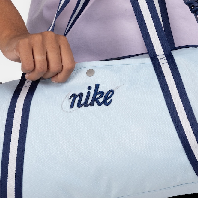 Desenvolvida com pelo menos 65% de fibras recicladas para uma pegada mais consciente e sustentável, a Mala Nike Heritage Duff é uma excelente opção para transportar os pertences nos treinos ou passeios.