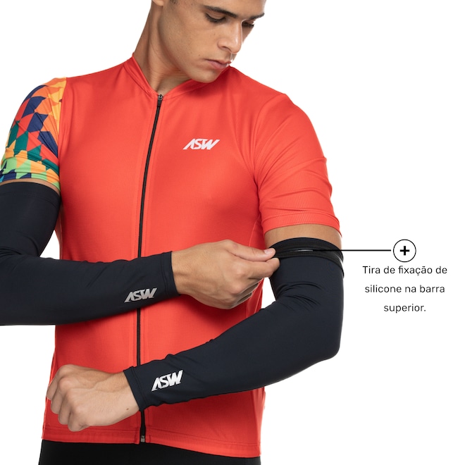 Acessório indispensável para treinos e competições, esse manguito possui o padrão de qualidade da marca ASW, desenvolvido com o toque fresco da poliamida e ajuste personalizado do elastano, além de tira em silicone na barra superior para uma melhor fixação.
