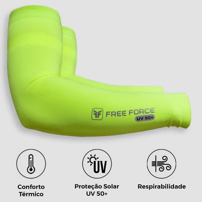 O manguito ciclismo verão Free Force Solare Amarelo Flúor foi desenvolvido para ajudar a manter a temperatura do corpo nos dias frios, como uma segunda-pele, e nos dias quentes, se torna uma excelente alternativa com proteção solar UV FPS 50+. Indicado para ciclismo, corrida, vôlei, beach tennis e outros esportes.