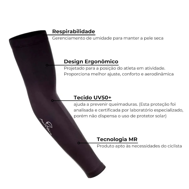 Manguito Ciclismo Verão Mauro Ribeiro Preto Proteção Uv 50+