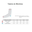 - Tamanho G: Bíceps (28 cm), punho (20 cm), comprimento (51 cm)