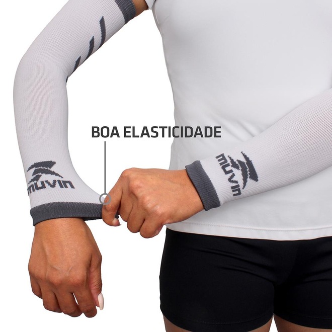 Os manguitos de compressão Arrow da Muvin foram desenvolvidos com material específico para trazer desempenho e conforto em práticas esportivas.