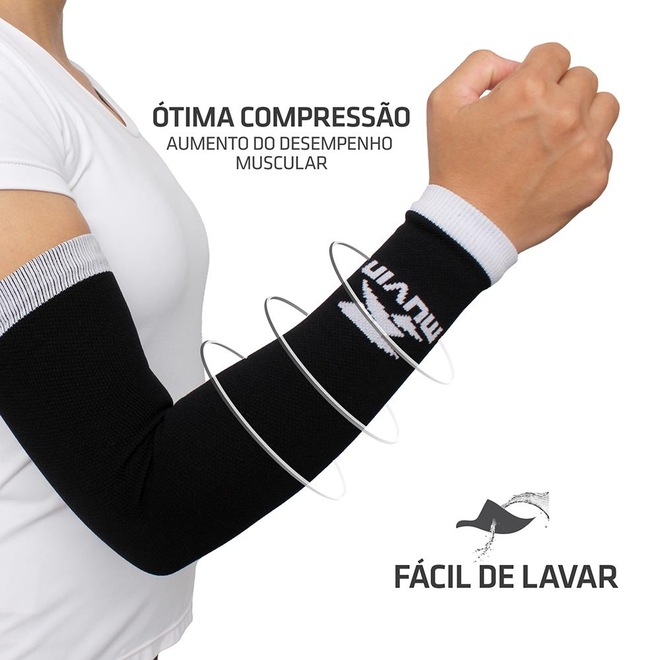 Os manguitos de compressão Solid da Muvin foram desenvolvidos com material específico para trazer desempenho e conforto em práticas esportivas.