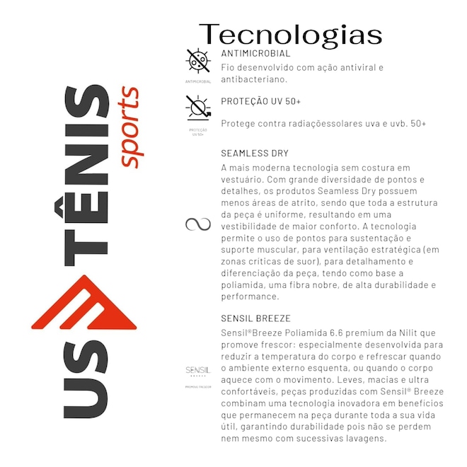 O Manguito Proteção UV Unissex LSport é um acessório versátil e funcional. Em poliamida e elastano, possui tecnologia Breeze, que proporciona frescor durante o uso e proteção UV 50 +. Por ser um produto Seamless Dry, possui menos areas de atrito, ajuste e vestibilidade perfeita e toque agradável. Características: > Leve, macio e ultraconfortável; > Alta durabilidade e performance; > Detalhes refletivos para maior segurança durante atividades noturnas. Esse produto pode ser usado em diversas práticas esportivas, entre elas corrida e ciclismo, trazendo facilidade de vestir ou tirar o produto durante o treino. Composição: 94% Poliamida, 6% Elastano Tecnologias: Fio desenvolvido com ação antiviral e antibacteriano. Protege contra radiaçõessolares uva e uvb. 50+ A mais moderna tecnologia sem costura em vestuário. Com grande diversidade de pontos e detalhes, os produtos Seamless Dry possuem menos áreas de atrito, sendo que toda a estrutura da peça é uniforme, resultando em uma vestibilidade de maior conforto. A tecnologia permite o uso de pontos para sustentação e suporte muscular, para ventilação estratégica (em zonas críticas de suor), para detalhamento e diferenciação da peça, tendo como base a poliamida, uma fibra nobre, de alta durabilidade e performance. Sensil®Breeze Poliamida 6.6 premium da Nilit que promove frescor: especialmente desenvolvida para reduzir a temperatura do corpo e refrescar quando o ambiente externo esquenta, ou quando o corpo aquece com o movimento. Leves, macias e ultra confortáveis, peças produzidas com Sensil® Breeze combinam uma tecnologia inovadora em benefícios que permanecem na peça durante toda a sua vida útil, garantindo durabilidade pois não se perdem nem mesmo com sucessivas lavagens.