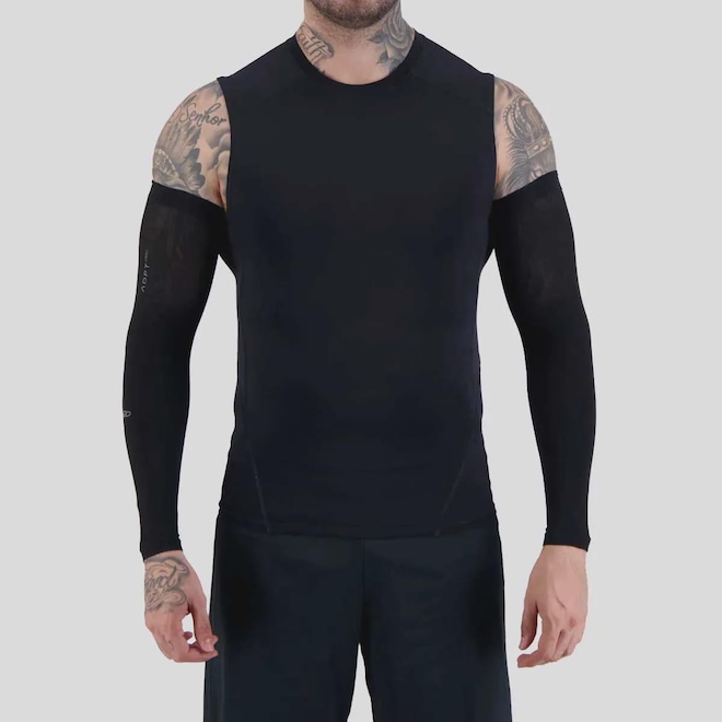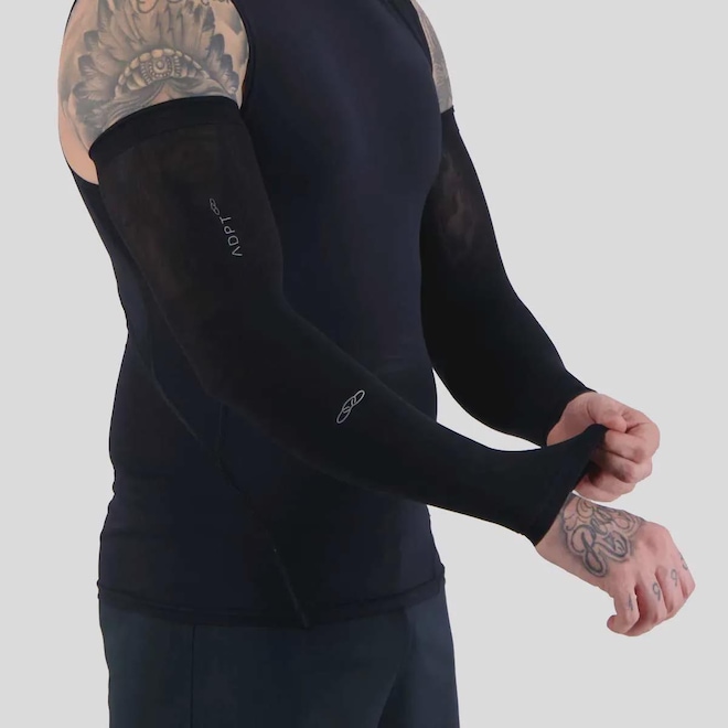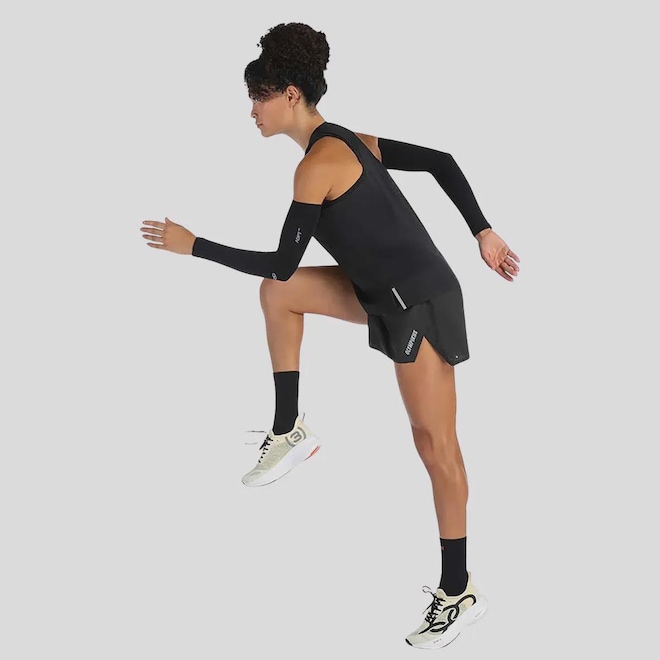 Tecnologias ADPT: Proporciona Adaptação Dinâmica para Performance Total. Seamless: Diminui os pontos de fricção, possuindo também, ventilação estratégica em zonas críticas de suor. UV Protection: Protege a pele da ação dos raios solares, gerando conforto e proteção durante a prática esportiva DRYACTION: Tecnologia que absorve o suor e mantém a pele seca. Composição: 86% Poliamida e 14% Elastano Cor predominante: Preta Indicado para: Corrida Origem: Importada Gênero: Unissex Logo: Estampado Contém: 01 Par Tamanho único (A x L): 43 x 10 cm