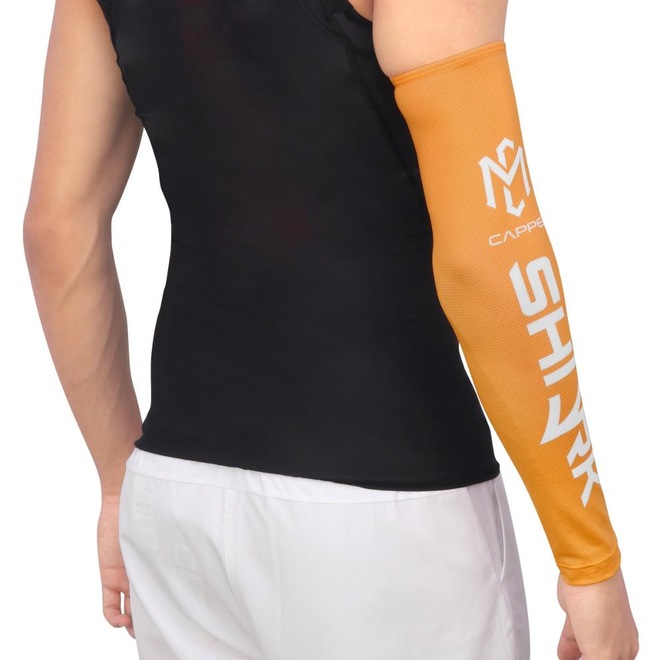 - Detalhamento: Tamanho único, Tecido leve e confortável, com microperfurações em toda extensão para melhor respirabildiade, compressão ideal melhorando a circulação sanguínea e reduzindo a fadiga muscular, escrita Shark e logo do altleta Cappe, Michele Cappelletti, em branco;