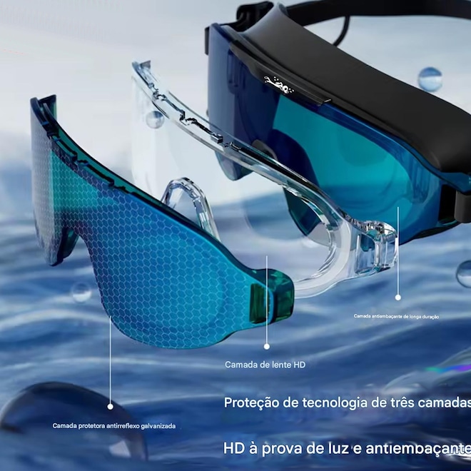 • Suas lentes são em poli carbonato de ultima geração com tecnologia inovadora e High Definition Eletroplacage