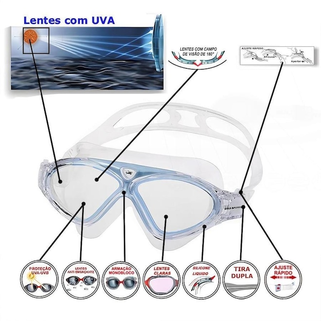 Óculos de Natação Gold Sports Silicone Confort High Definition - Adulto