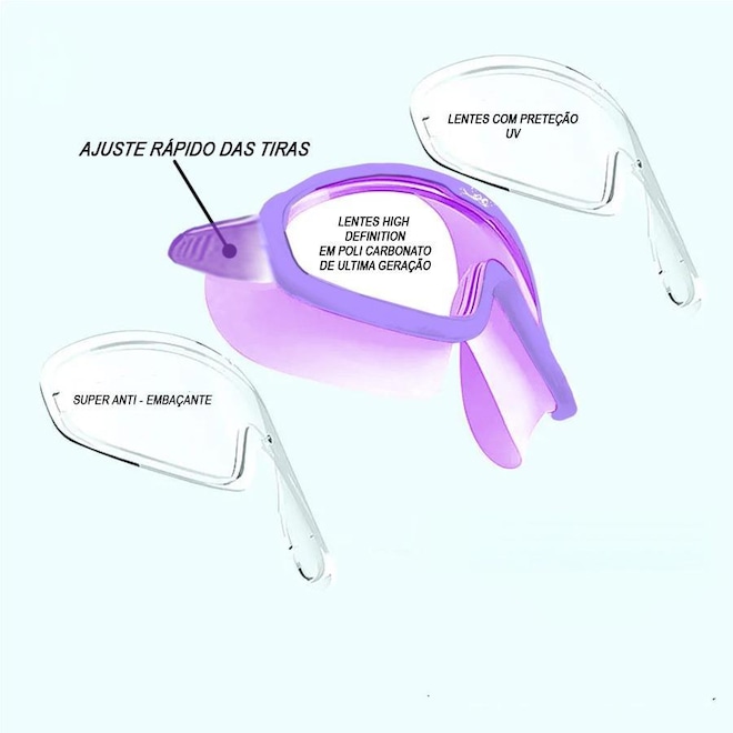 - Sobre o produto - Máscara de Natação Gold Sports Vision Ajuste Rápido - Juvenil High Definition- Máscara De Natação Gold Sports Vision Ajuste Rápido - Juvenil High Definition Característica 1. Moldura de cloreto de polivinilo com revestimento resistente a impacto. 2. Campo extra largo de visão: Nossa máscara de natação Gold Sports Infanto-Juvenil são projetados com lentes mais largas e possuem campo de visão de 180 graus. Proporciona máximo campo de visão e clareza para garantir seu filho tem uma experiência de natação mais confortável. 3. Design funcional: O novo botão de ajuste das tiras facilita o ajuste. O frame se encaixa perfeitamente, e o design mais largo distribui a pressão de forma mais uniforme, dando sua criança uma experiência de uso confortável. 4. Proteção antiembaçante e UVA e UVB400: Nossa máscara de natação infanto-juvenil são equipados com lentes de policarbonato resistente a impacto. Todas as lentes proporcionam proteção antiembaçante e anti-UVa e UVB400, que podem proteger os olhos do seu filho dos danos dos raios UV e proporcionar a melhor visão. 5. Os materiais mais seguros: Nossa máscara de natação é feito de silicone inodoro, hipoalergênico. O gascket da Mascara de natação possui Design 3D ergonômico encaixa perfeitamente na cavidade ocular de crianças e Adolececentes e seu silicoce e ultra soft anti alérgico. Acompanha um par de protetor de ouvido de silicone ultra soft e anti alérgico - Marca: Gold Sports - Composição: policarbonato, silicone e PVC -Garantia: 01 mês somente contra defeito de fabricação - ref: M14D5Y