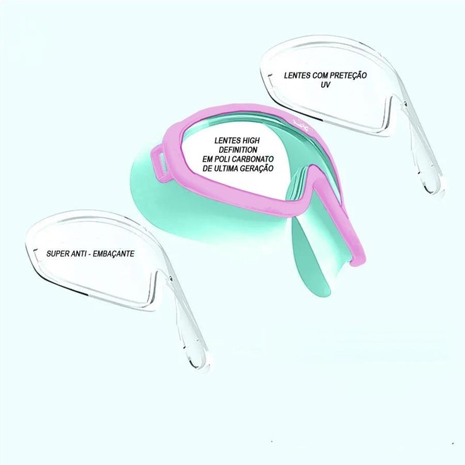 A Mascara De Natação Gold Sports Vision Infanto - Juvenil High Definition Característica 1. Moldura de cloreto de polivinilo com revestimento resistente a impacto. 2. Campo extra largo de visão: Nossa máscara de natação Gold Sports Infanto-Juvenil são projetados com lentes mais largas e possuem campo de visão de 180 graus. Proporciona máximo campo de visão e clareza para garantir seu filho tem uma experiência de natação mais confortável. 3. Design funcional: O novo botão de ajuste das tiras facilita o ajuste. O frame se encaixa perfeitamente, e o design mais largo distribui a pressão de forma mais uniforme, dando sua criança uma experiência de uso confortável. 4. Proteção antiembaçante e UVA e UVB400: Nossa máscara de natação infanto-juvenil são equipados com lentes de policarbonato resistente a impacto. Todas as lentes proporcionam proteção antiembaçante e anti-UVa e UVB400, que podem proteger os olhos do seu filho dos danos dos raios UV e proporcionar a melhor visão. 5. Os materiais mais seguros: Nossa máscara de natação é feito de silicone inodoro, hipoalergênico. O gascket da Mascara de natação possui Design 3D ergonômico encaixa perfeitamente na cavidade ocular de crianças e Adolececentes e seu silicoce e ultra soft anti alérgico. Acompanha um par de protetor de ouvido de silicone ultra soft e anti alérgico