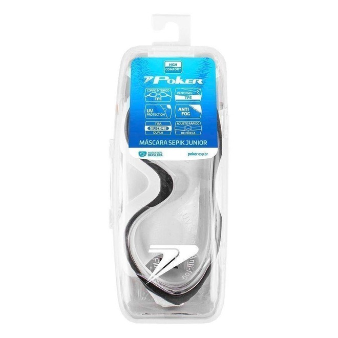 Nome: Máscara de Natação Infantil Poker Sepik Junior Hg Gênero: Unissex/Infantil Indicado para: Natação Tecnologias: UV Proteção: Proteção completa contra os raios UVA e UVB, oferecendo 100% de segurança contra raios nocivos. Wide Vision: As lentes Wide Vision proporcionam um campo de visão ampliado, permitindo uma visibilidade abrangente. Anti Fog: As lentes são tratadas com um revestimento especial que evita o embaçamento durante a prática esportiva.Vedações: Ventosas TPE: Com excelente conforto e vedação, esse material se destaca pela sua leveza, flexibilidade e alta resistência às altas temperaturas. Ultra Waterproof: Oferece conforto e ótima vedaçãoTiras: Tiras Duplas de SiliconeMaterial Corpo: TPEMaterial Lente: PC PolicarbonatoAjuste: O ajuste rápido de fivela é realizado de forma prática, apenas segurando a fivela e puxando as tiras para um melhor ajusteCategoria: Profissional Marca: Poker Código do Artigo: 13240-BPT