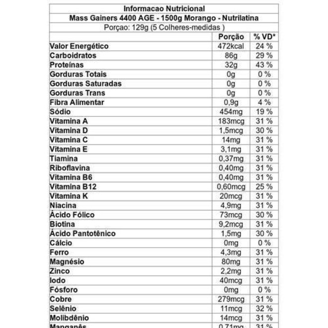 Hipercalórico Nutrilatina Age Superior Mass Gainers 4400 - Morango - 1,5kg