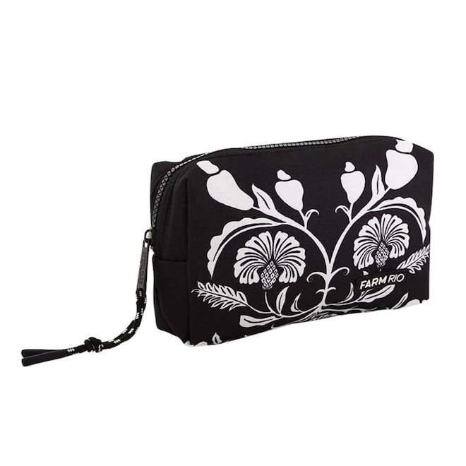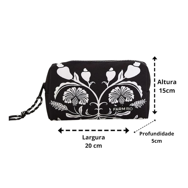 A Necessaire Farm Ora Bolas Sintra une organização e charme clássico. Confeccionada em poliéster resistente com fundo preto e estampa gráfica colorida inspirada em azulejos, ela possui tamanho ideal para guardar itens de higiene e maquiagem. Seu formato estruturado facilita a acomodação em bolsas ou malas, mantendo seus pertences seguros e acessíveis com o estilo autêntico da Farm Rio. Especificações: - Modelo: Ora Bolas. - Estampa: Sintra. - Medidas: 20cm (Largura) x 15cm (Altura) x 5cm (Profundidade). - Fechamento: Zíper com puxador. - Material: Poliéster leve e durável. Benefícios: - Tamanho versátil para o dia a dia ou viagens curtas. - Estampa exclusiva Sintra que moderniza o visual. - Material resistente e de fácil limpeza. - Ótimo espaço interno para cosméticos essenciais. - Formato compacto que não ocupa muito espaço na mala. Composição: - 100% Poliéster. Cuidados e Conservação: Limpar apenas com pano úmido e sabão neutro. Não lavar na máquina e não deixar de molho. Secar à sombra em local ventilado. Não utilizar produtos químicos abrasivos ou alvejantes. Evitar contato com objetos pontiagudos ou cortantes.