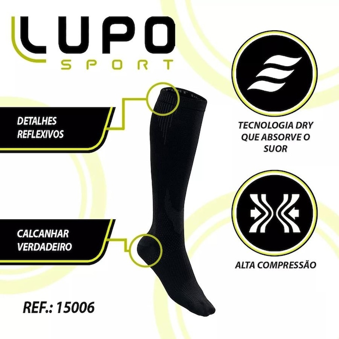 A meia Lupo 3/4 de Compressão é ideal para atividades físicas, especialmente corrida e treinos intensos. Projetada para reduzir a fadiga muscular e otimizar o desempenho esportivo, ela funciona aplicando uma suave compressão nas veias das pernas, desde o pé até a panturrilha. Isso auxilia na circulação sanguínea, aumenta a oxigenação muscular e minimiza dores.