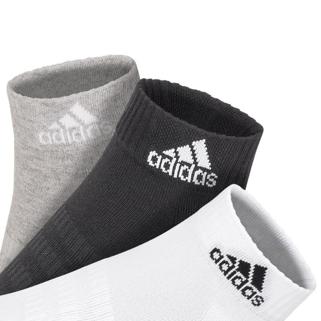 Descrição da Meia adidas Ankle Cushioned Sportswear 41 ao 43 - Pack com 3 Pares - Cinza Branca e Preta