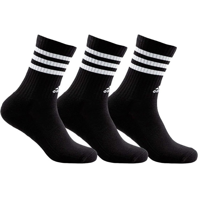 Cuidar dos pés é essencial para manter a saúde do corpo. Desenvolvidas com foco no conforto, esta Meia Adidas Cano Alto 3 Pack 3-Stripes Unissex é feita de tecido misto de algodão macio e elástico. Além de confortáveis, elas proporcionam suporte para o arco do pé e amortecimento nos calcanhares e dedos, sendo ideais para qualquer tipo de atleta. Este produto é composto por, no mínimo, 70% de uma mistura de materiais reciclados e renováveis. Perfeita para compor os seus looks! 62% algodão, 36% poliéster, 1% elastano, 1% náilon reciclado;Pacote com três pares;Cano alto;Costuras seladas nos dedos.