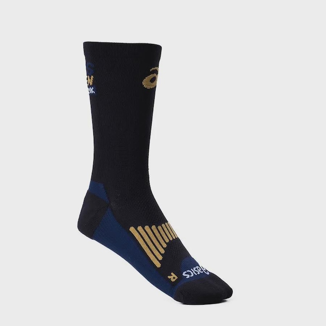 A Meia ASICS GOLDEN RUN combina conforto, durabilidade e inspiração para atletas que buscam o melhor desempenho. Oferece fio macio, reforço no cano, compressão no arco do pé e amortecimento estratégico para controle de umidade e respirabilidade. A ponteira com costura plana reduz o volume, enquanto o calcanhar anatômico garante ajuste perfeito. O design em preto com detalhes em dourado, azul e branco faz referencia ao maior circuito de meia maratona da América Latina, com o logo ASICS Golden Run no tornozelo e a espiral ASICS na parte frontal.-