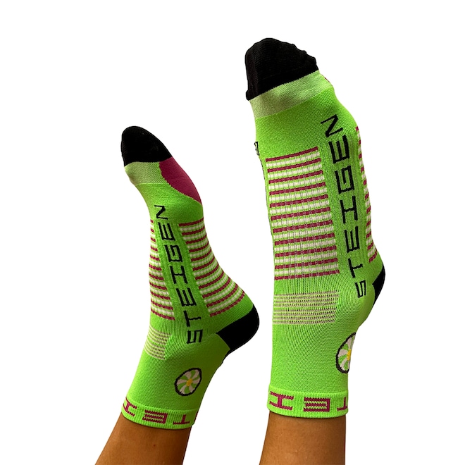 Modelo: Meia Steigen Cano Baixo- Fluro Green Comprimento: Cano Baixo ( 1/4 ) As meias esportivas Steigen são Anti-bolhas e garantem conforto e rendimento para a sua corrida. Foram desenvolvidas na Austrália especialmente para a prática de esportes e corrida. Possuem uma tecnologia especial que garante que seu tecido não retenha umidade e matém seus pés secos o tempo todo! Feito por atletas, para atletas! Característica: • Almofada no antepé para conforto e durabilidade • Tecido Leve para rápida tranferência de humidade e respirabilidade • Nylon microfibra (80%) com Lycra (20%) para Ajuste perfeito • Malha Superior de fluxo de ar • Sem costura • Suporte no arco Plantar • 100% livre de bolhas • Tamanho único: 33 ao 44 Não fazem dobras e vincos no tornozelos devido aos detalhes especiais no tecido. As cores e desenhos deixam as meias ainda mais bonitas. Garantia do Fornecedor: 3 Meses Conteúdo da embalagem: • 01 Par de Meia Steigen Cuidados e conservação: Por ser uma meia esportiva, principalmente de corrida, recomendamos ter cuidado na higienização da sua meia Steigen. Dessa forma, você conseguirá tê-la por muito mais tempo em seus treinos. - Procure lavar em água fria com sabão Neutro. - Não use Alvejante. - Mantenha em espaço com boa ventilação e longe da umidade. - Evite lavar com roupas ásperas ou com zíperes que possam causar atrito. - Evite o uso de amaciante, o mesmo pode diminuir a capacidade de absorção de umidade das meias. Portanto, é melhor evitá-lo. - Cuidado com unhas afiadas, unhas afiadas podem causar desgaste prematuros nas meias. Lembrando que as meias steigen são respiráveis, antiodor e de secagem rápida, tornando-as ideais para atividades esportivas e uso diário. Curtiu? Cresça conosco e alcançe o seu melhor! Compre já!