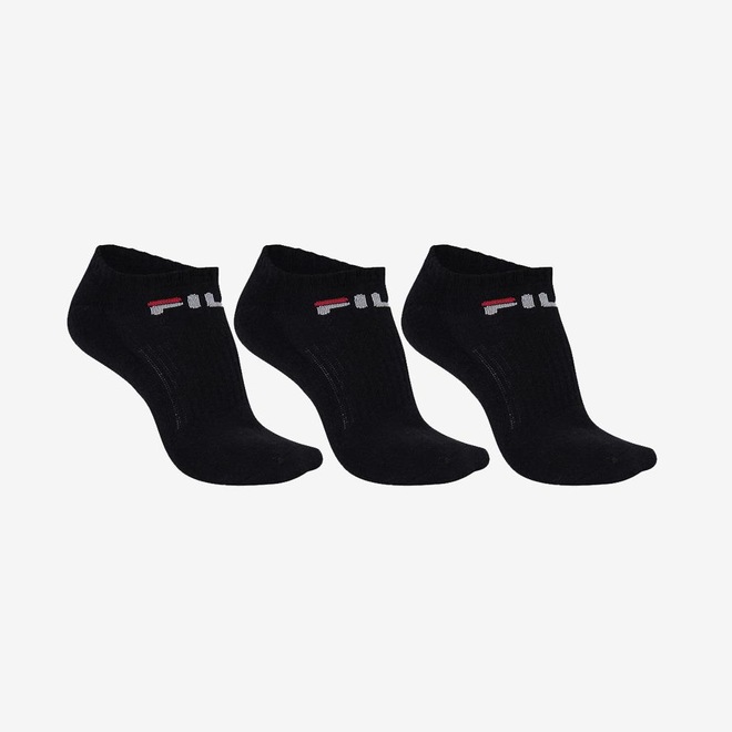 Tripack de meias cano curto confeccionadas em mix de algodão, poliéster, elastano e elastodieno. Kit apresenta três pares de meia cano curto, sola atoalhada, faixa tensora no peito do pé, pontas e calcanhares verdadeiros. Possui logo FILA em Jacquard próximo ao punho.