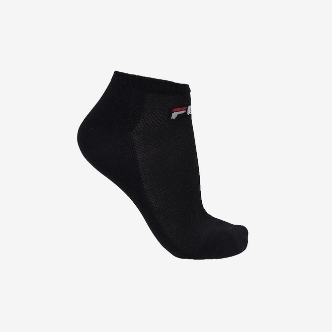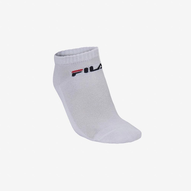 Tripack de meias cano curto desenvolvidas em mix de algodão, poliéster, elastano e elastodieno, garantindo conforto e ajuste ideal. O kit contém três pares de meias cano curto, com sola atoalhada para maior maciez, malha mais aberta no mediopé para respirabilidade e estrutura com pontas e calcanhares verdadeiros para ajuste anatômico. Possui logo FILA em Jacquard próximo ao punho, agregando autenticidade ao modelo.