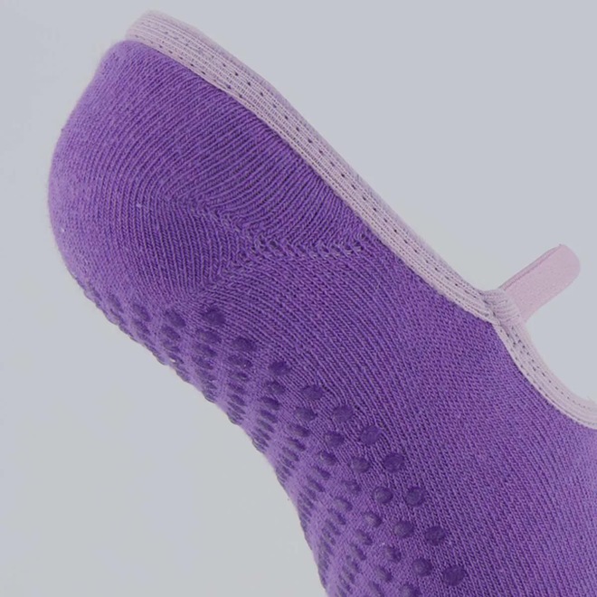 Composição: 76% Algodão, 21% Poliamida e 03% Elastano Contém: 01 par na cor roxa Indicado para: Pilates Ajuste: Tira elástica Gênero: Feminino Origem: Nacional Cano: Invisível Peso aproximado: 50g do par n° 34-39 Tamanho 34-39