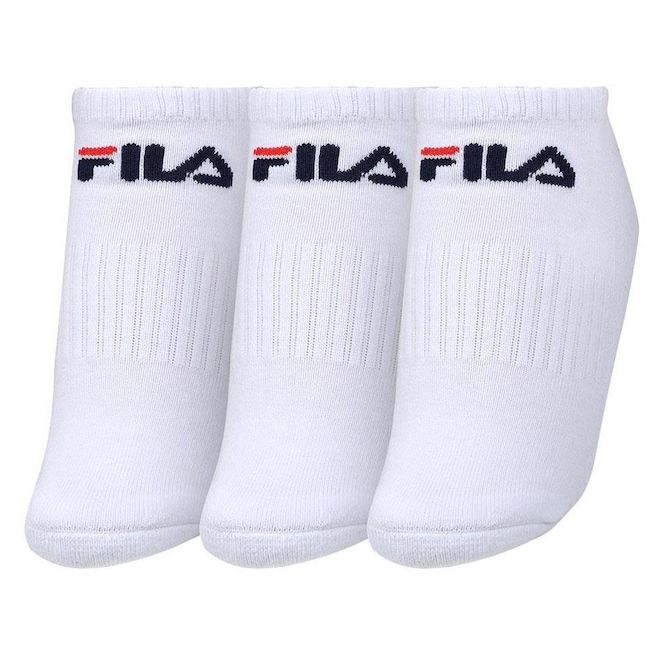 Detalhamento: Pack com três pares , meia cano invisível, calcanhar, sola e ponta com revestimento interno atoalhado, forma anatômica para um melhor ajuste ao vesti-la, marca Fila estampada na parte frontal próximo ao elástico do cano, calça do tamanho 34 ao 38 - Origem: Importada.