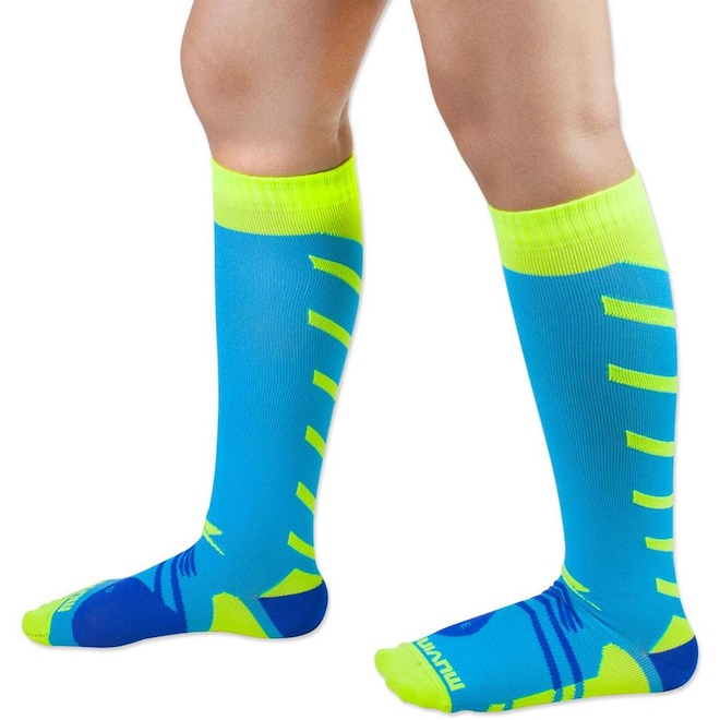 MUITO MAIS CONFORTO: A Meia Cano Longo de Compressão Arrow da Muvin foi desenvolvida para proporcionar conforto extra em práticas de exercícios como corrida, caminhada e ciclismo, pois protege contra bolhas
