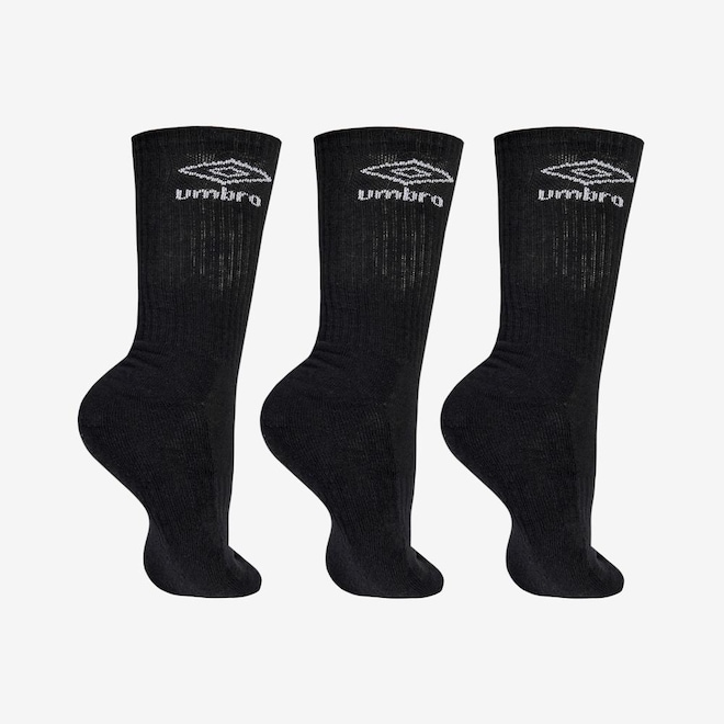 Kit com três pares de meias unissex de cano longo (21 cm de comprimento), desenvolvidas em algodão macio para toque suave. A faixa tensora no peito do pé garante ajuste firme, enquanto a sola atoalhada absorve o suor e proporciona conforto prolongado. Pontas e calcanhares verdadeiros aumentam a durabilidade e o encaixe anatômico.