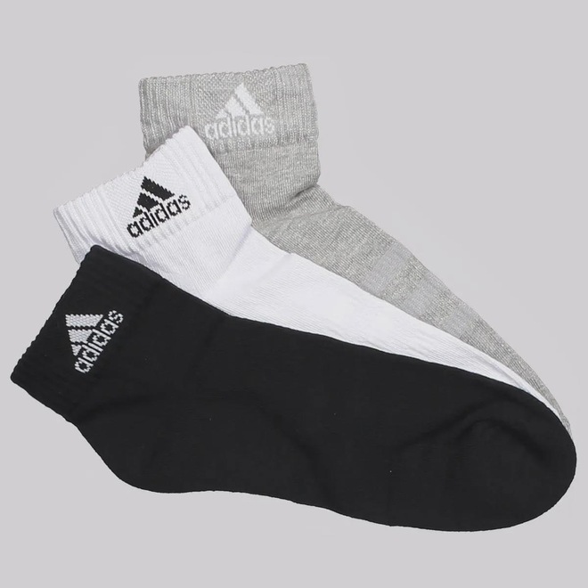 Composição branca e preta: 63% Algodão, 22% Poliéster, 12% Poliamida e 03% ElastanoComposição cinza: 55% Algodão, 30% Poliéster, 12% Poliamida e 03% ElastanoContém: 06 pares de meia - 02 brancos, 02 pretos e 02 cinzasIndicado para: CasualOrigem: NacionalGênero: UnissexCano: MédioTamanhos:P: 35-37M: 38-40G: 41-43