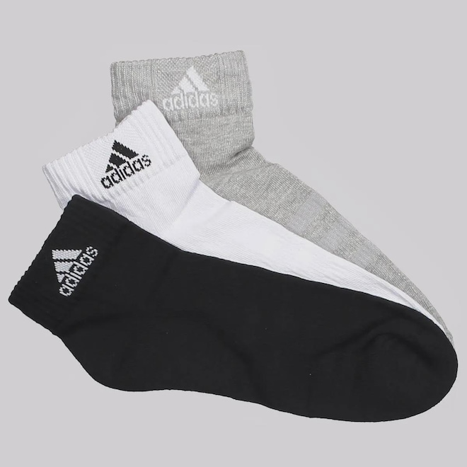 Composição branca e preta: 63% Algodão, 22% Poliéster, 12% Poliamida e 03% ElastanoComposição cinza: 55% Algodão, 30% Poliéster, 12% Poliamida e 03% ElastanoContém: 09 pares de meia - 03 brancos, 03 pretos e 03 cinzasIndicado para: CasualOrigem: NacionalGênero: UnissexCano: MédioTamanhos:P: 35-37M: 38-40G: 41-43