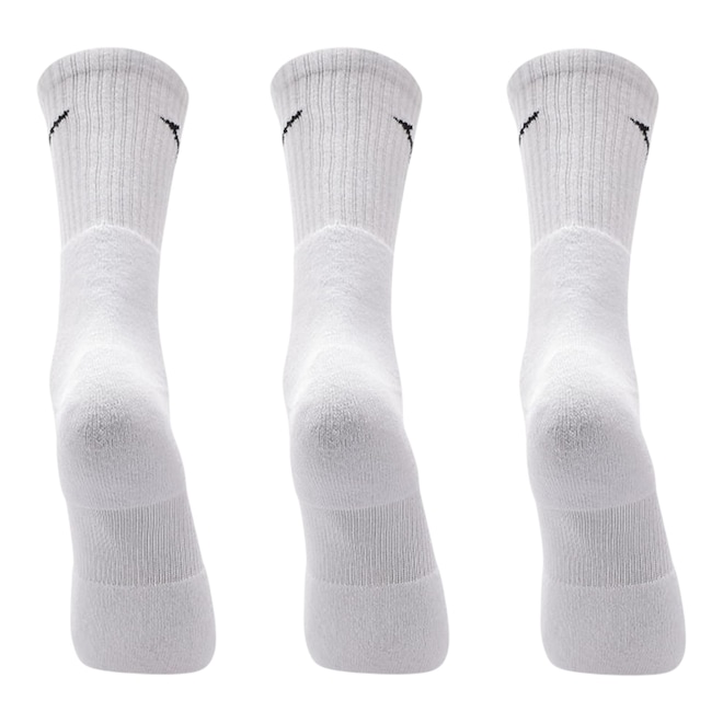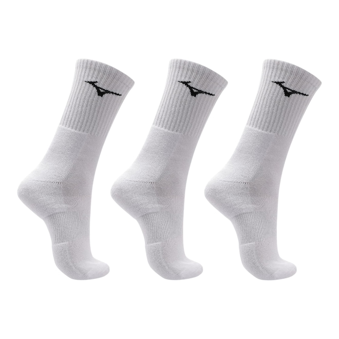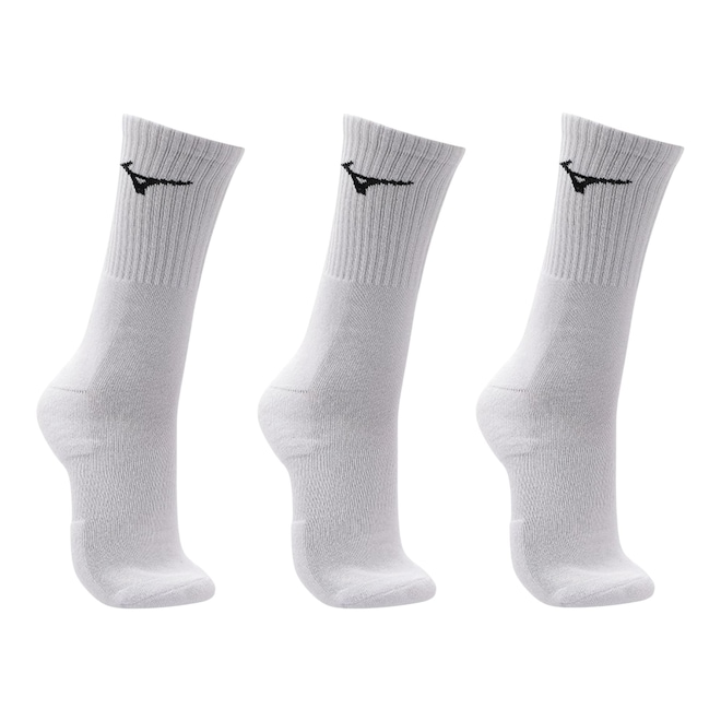 As meias Mizuno São Confeccionadas com matéria Prima Selecionada para entregar a mais alta qualidade ao produto, são produzidas em fio de algodão natural 30/1 e fibra sintética que contribuem para o conforto e controle de umidade com pontos de ventilação para manter os pés secos. As meias possuem calcanhar verdadeiro para terem o melhor calçar. Composição: 75% algodão, 22% Poliéster, 2% elastano e 1% elastodieno. Base atoalhada. Tamanho: M - 33-38 G-39-44