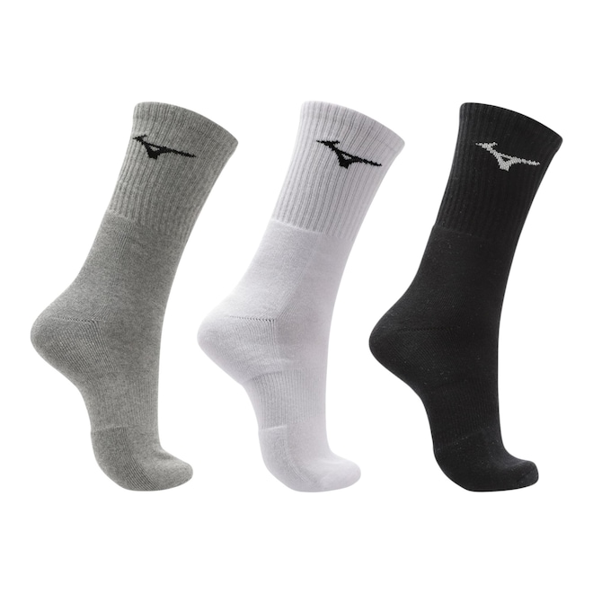 As meias Mizuno São Confeccionadas com matéria Prima Selecionada para entregar a mais alta qualidade ao produto, são produzidas em fio de algodão natural 30/1 e fibra sintética que contribuem para o conforto e controle de umidade com pontos de ventilação para manter os pés secos. As meias possuem calcanhar verdadeiro para terem o melhor calçar. Composição: 75% algodão, 22% Poliéster, 2% elastano e 1% elastodieno. Base atoalhada. Tamanho: M - 33-38 G-39-44