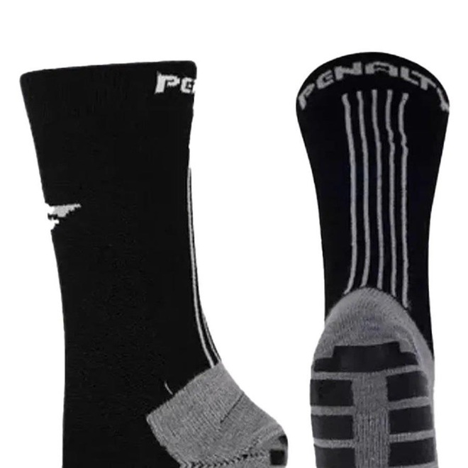 ? A Meia Cano Medio Penalty Grip Masculina foi desenvolvida para proporcionar conforto e maciez aos pés, auxiliando na prevenção de bolhas indesejadas causadas durante as partidas. Além disso, a meia garante ótima absorção e transporte de suor para a camada externa da meia. Seu principal diferencial é contar com sola antiderrapante, auxiliando os pés a manter estável no calçado ou chuteira. Benefícios: Conforto aos pés. Ótima absorção e transporte de suor e prevenção de bolhas. É confeccionada 80,50% poliéster, 12,90% poliamida, 5,3% elastiodieno e 1,30% elastano. Feita para seus jogos!ref: M0YV5B