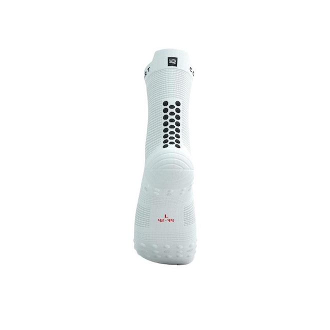 Maior conforto, prevenção de bolhas e ventilação ideal em todas as corridas:Para a nova geração do nosso best-seller Pro Racing Socks Run V4.0, pedimos aos corredores da Compressport que nos dissessem exatamente o que eles gostavam, precisavam e queriam. O resultado é uma meia de corrida projetada especificamente para oferecer ventilação ideal e proteção contra bolhas enquanto você corre em direção ao seu próximo RP. O tecido técnico é leve e ventilado, absorvendo rapidamente a umidade para que seus pés permaneçam frescos e secos, mesmo em condições mais quentes. Uma nova biqueira mais larga oferece um ajuste mais ergonômico e propriocepção aprimorada, permitindo que os dedos dos pés se agarrem intuitivamente ao aterrissar para uma passada natural e fluida. Uma malha leve ao redor do tornozelo oferece suporte direcionado quando você acelera o ritmo, enquanto o acolchoamento de tecido felpudo no dedão do pé evita unhas machucadas em corridas mais longas. O suporte de arco médio aumenta a microcirculação e evita que o tecido se torça e dobre, evitando bolhas e irritação. Sobre o tendão de Aquiles, duas linhas de 3D Dots adicionam proteção e suporte, além de uma fileira de novos Flat Dots para maior ventilação. Sob os pés, um padrão de 3D Dots (75%) e Flat Dots (25%) amortece o impacto e oferece maior aderência e ventilação, bem como uma micro estimulação leve, que ajuda a aumentar o retorno venoso e retarda a fadiga à medida que os quilômetros se acumulam. A altura do cano é menor do que os modelos de trilha e bike, com ajuste e tecnologias projetadas especificamente para as demandas de corrida de rua. Uma aba ergonômica na parte de trás da meia adiciona um toque de conforto e estilo. O design elegante desta meia de alta tecnologia é fiel ao nosso DNA de desempenho, então tudo o que resta para você é treinar sua corrida com velocidade, conforto e classe.