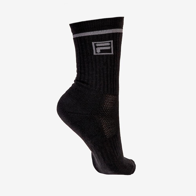 A Meia Unissex FILA Sport StyleTeam é confeccionada em poliamida e elastano, possui cano longo e punho canelado, sola atoalhada e faixa tensora no mediopé. Conta com lista contrastante e logo F-Box na lateral superior, ambos em jacquard próximo ao punho.ref: M17M4A
