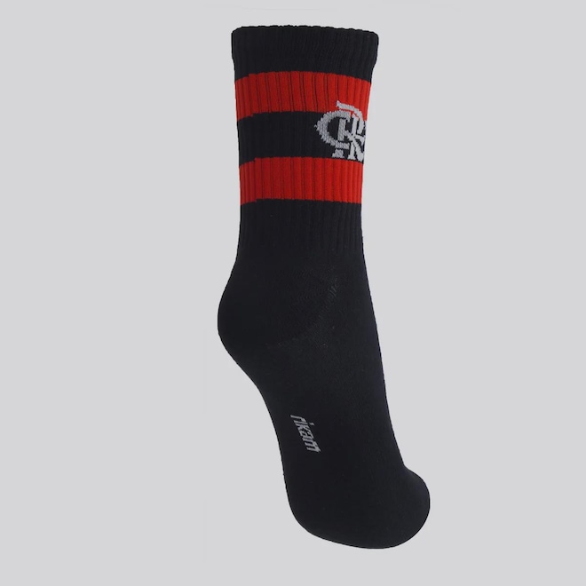 Composição: 66% Algodão, 21% Poliéster, 10% Poliamida, 02% Elastano e 01% ElastodienoContém: 01 par nas cores preta e vermelhaIndicada para: TreinoOrigem: NacionalClube: FlamengoGênero: UnissexCano: AltoTamanho: 38 ao 43