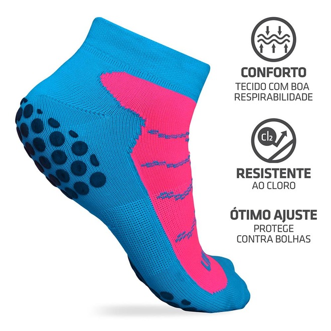 As meias de hidroginástica foram desenvolvidas com material específico para trazer desempenho e conforto aos pés, além de ter maior resistência ao cloro.