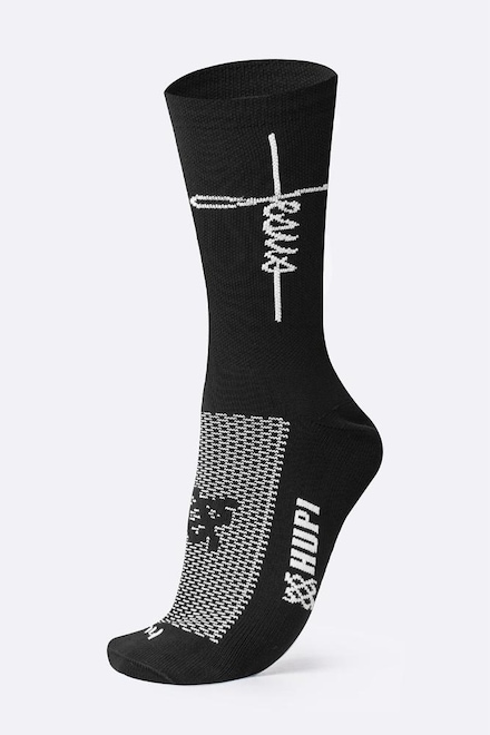 Materiais e Tecnologia da Meia HUPI Jesus Preto Branco Plus