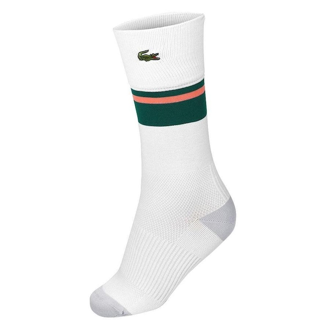 Descrição da Meia Lacoste Color Block Tennis 41 ao 46 - Branca Verde e Rosa A verdadeira história da Lacoste começa em 1923 com o Crocodilo, René Lacoste, depois de uma aposta feita entre ele e o capitão da equipe francesa na Taça Davis, Allan H.Muhr que prometeu uma mala em pele de crocodilo se René conseguisse fazer um bom jogo para sua equipe.