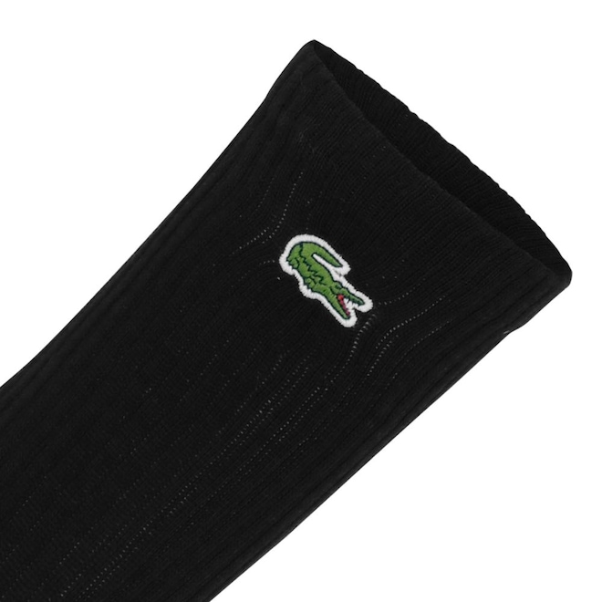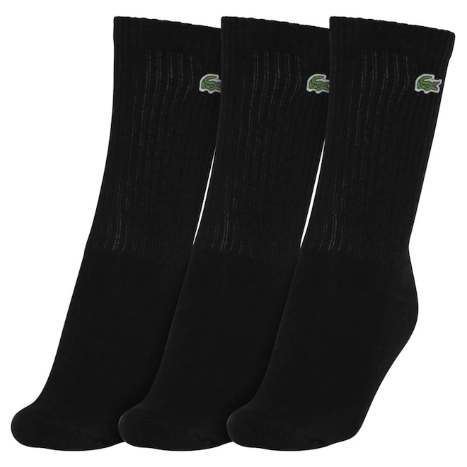 - Detalhamento: Embalagem com 3 pares de meias, nas cores preta. Cano alto (20cm) com logo Lacoste bordado na lateral externa do cano de cada meia, calça do 39 ao 42;