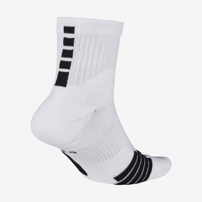 A Meia de Basquete Nike Elite Mid proporciona ajuste e sensação de suporte graças à faixa na curva, ao passo que o amortecimento direcionado ajuda a absorver o impacto enquanto você corre em quadra.