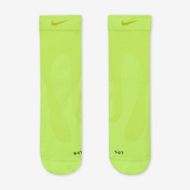 Apresentamos as novas meias de corrida da Nike. Projetadas para oferecer caimento justo, contam com tecnologia avançada antissuor e amortecimento e sustentação estrategicamente posicionados. Isso significa que é possível esquecer o ajuste e focar na corrida. Além disso, não há costuras internas, garantindo que a corrida aconteça sem nenhuma distração.