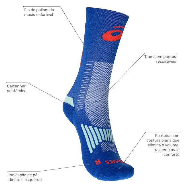 Projetada pela ASICS, uma marca reconhecida por sua qualidade e inovação em produtos esportivos, esta meia oferece suporte excepcional e ajuste perfeito para os pés.