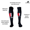 Disponível nas opções branca e preta, ele oferece um ajuste anatômico perfeito, garantindo flexibilidade e respirabilidade para melhor desempenho nos treinos e partidas. Feito com 98% poliamida e 2% elastano, conta com cano longo para maior suporte e proteção, além de tecnologia anti-suor que mantém os pés secos e confortáveis.