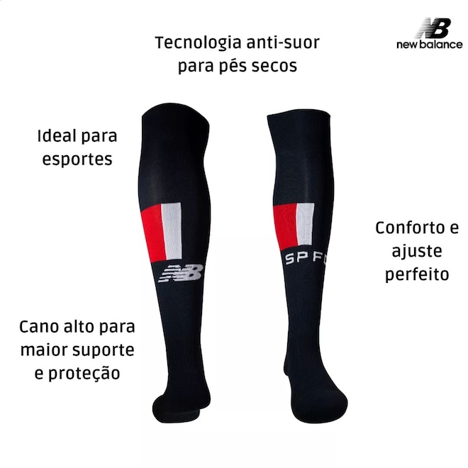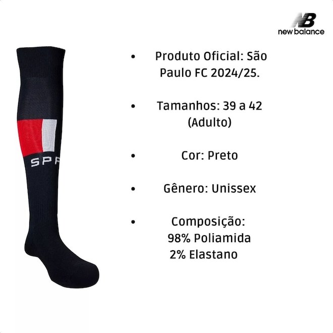 Desenvolvido para quem busca conforto e desempenho, o meião oficial do São Paulo FC para a temporada 2024/2025, produzido pela New Balance, combina tecnologia, qualidade e um design moderno nas cores tradicionais do Tricolor.
