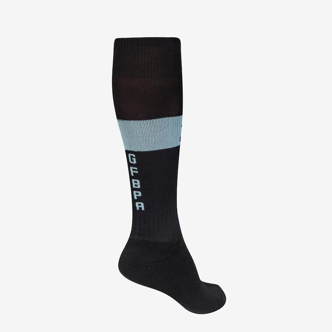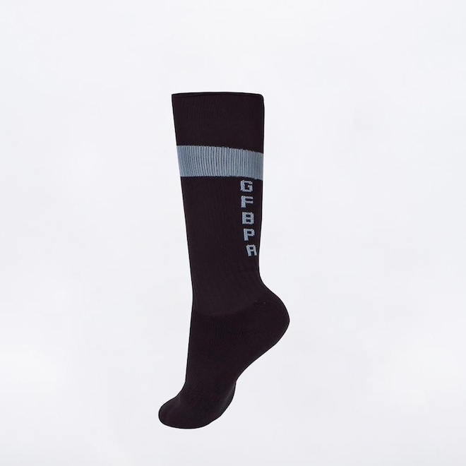 Meião juvenil do Grêmio, do uniforme oficial 2. Possui faixa contrastante com logo da Umbro e siglas do clube em cor contrastante na panturrilha. Em poliamida, com o pé em algodão, punho canelado, faixa elástica a partir da faixa de cor contrastante.ref: M10331