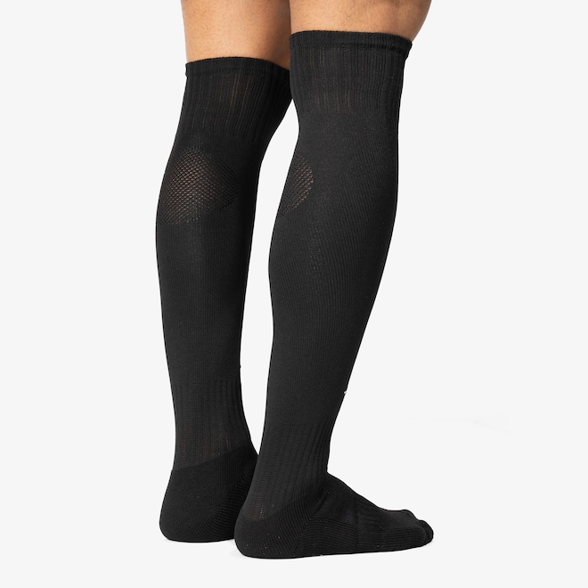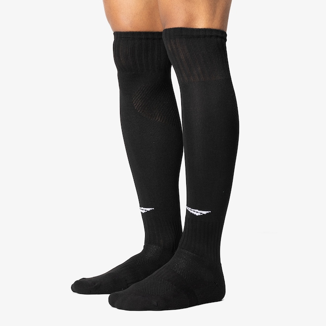 De cano alto e punho elástico para mais suporte, o Meião de Futebol Penalty possui detalhe canelado no arco do pé que ajuda a evitar seu deslocamento.